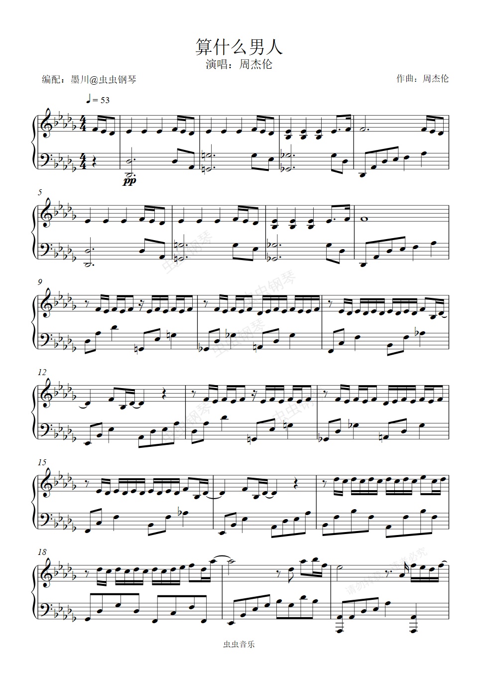 钢琴谱:算什么男人—周杰伦—降D调编配