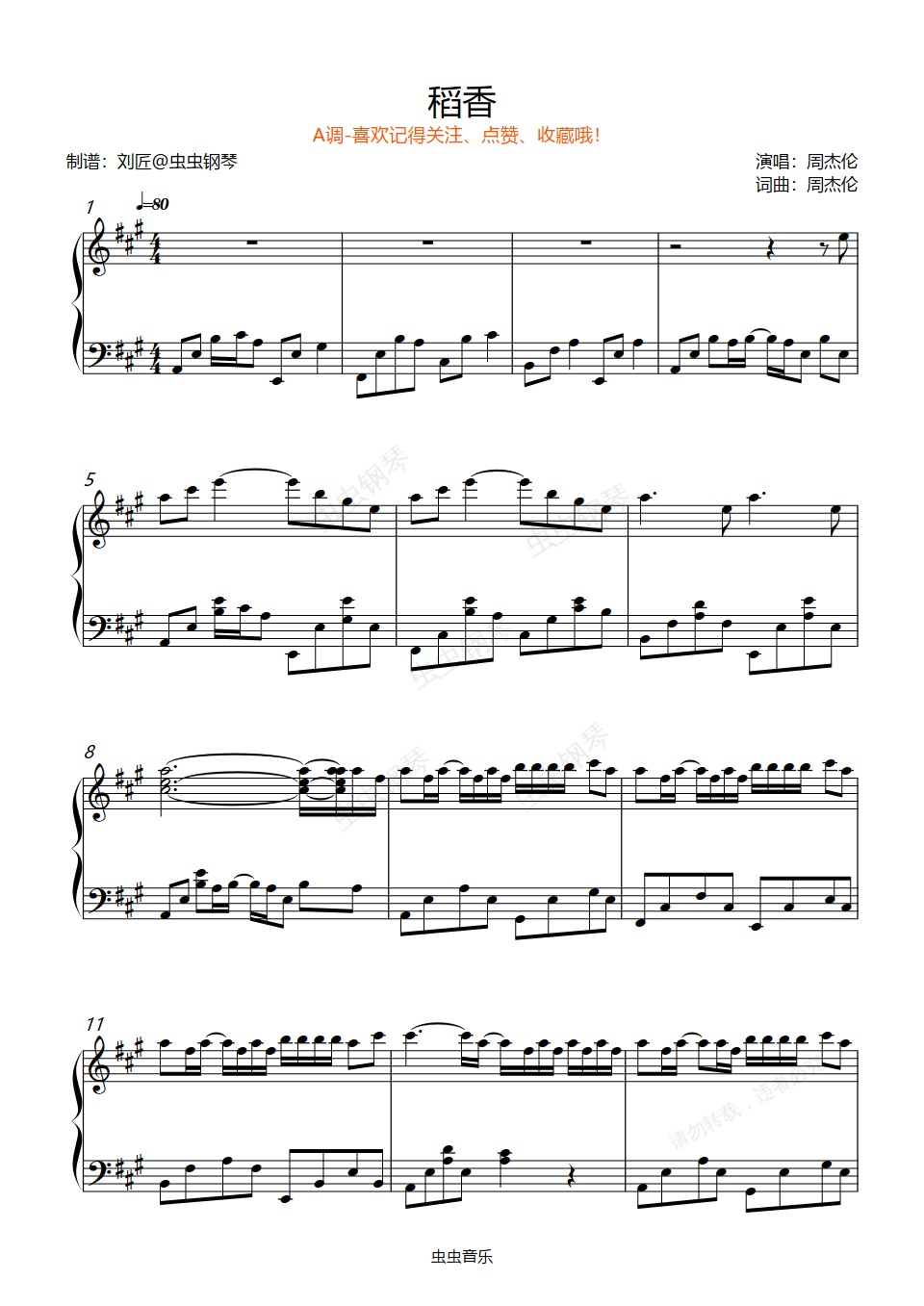 钢琴谱:【经典好弹】《稻香》- 刘匠编配-C调
