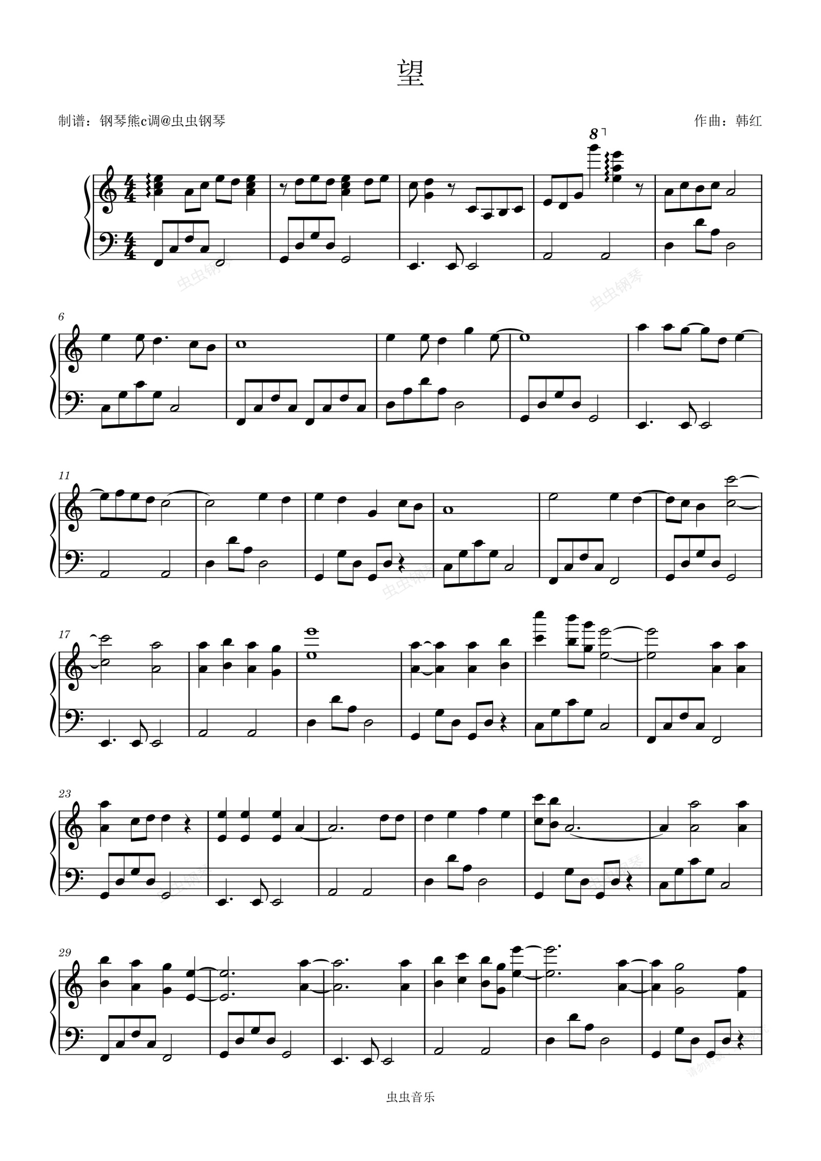 钢琴谱:C调《望》满江红 喜欢的兄弟记得点收藏♥♥♥👇👇 👇