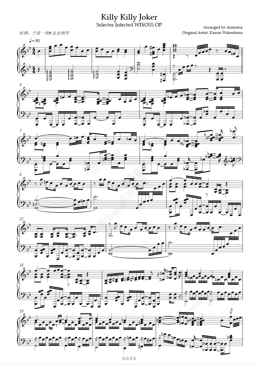 钢琴谱:[Animenz] Killy Killy Joker 选择感染者OP 钢琴