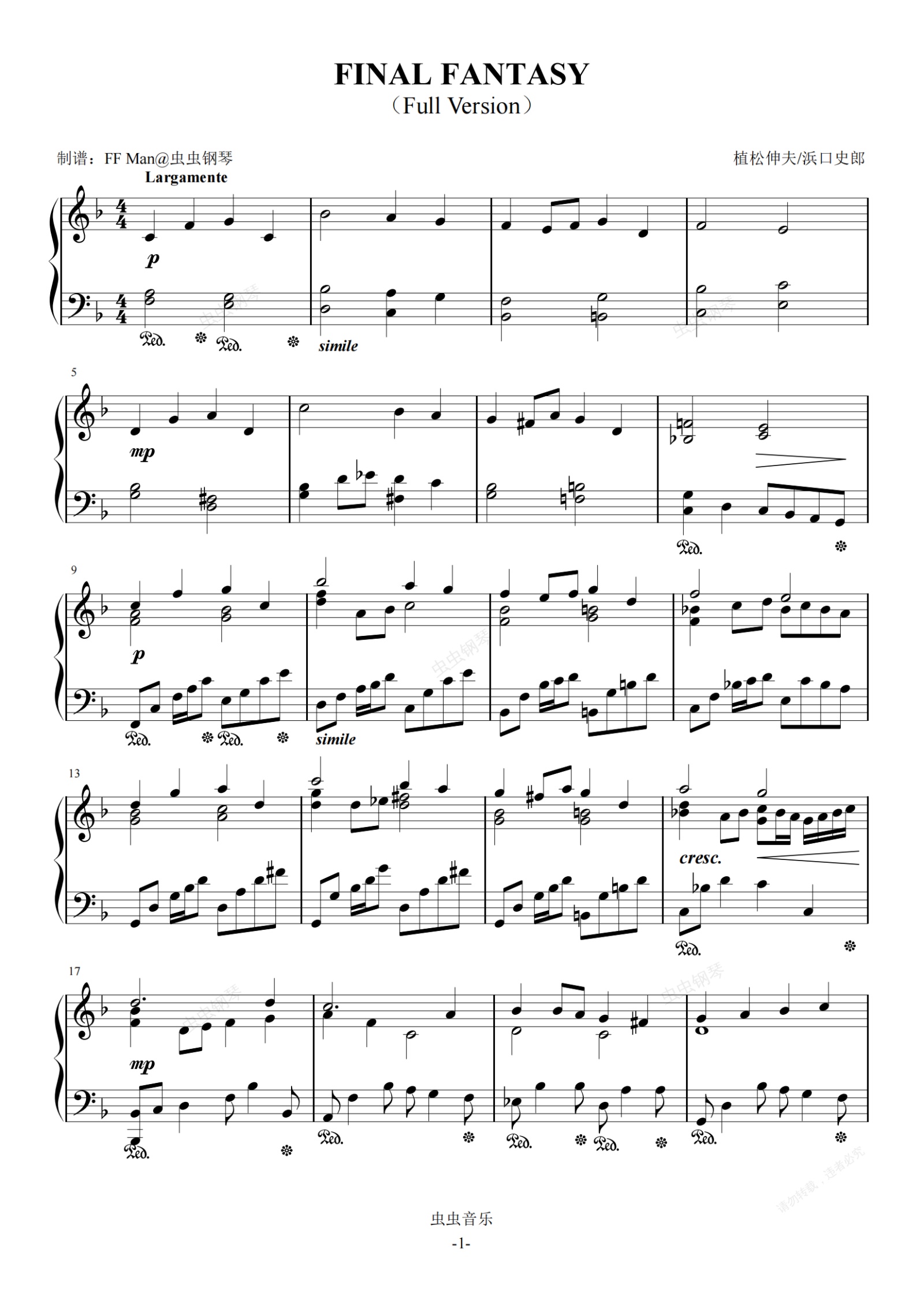 钢琴谱:FINAL FANTASY
