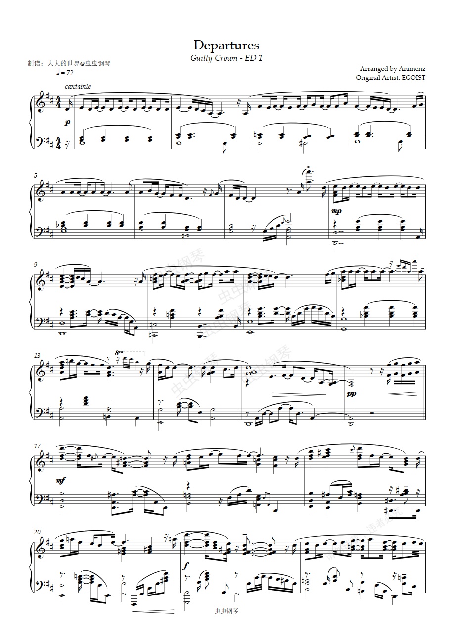 钢琴谱:【Animenz版】Departures (罪恶王冠 ED1) - Guilty Crown ED1