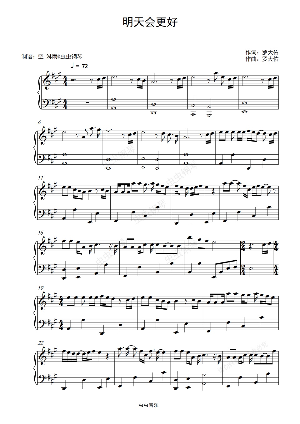 钢琴谱:明天会更好 (原调)