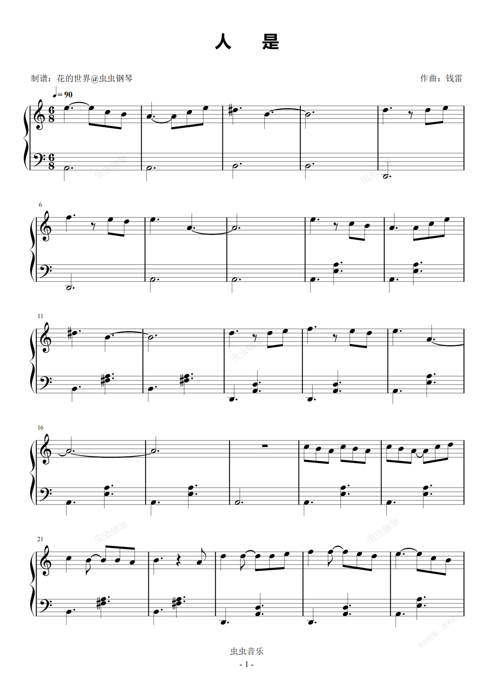 钢琴谱:人是_ C调简易版 周深 流浪地球2