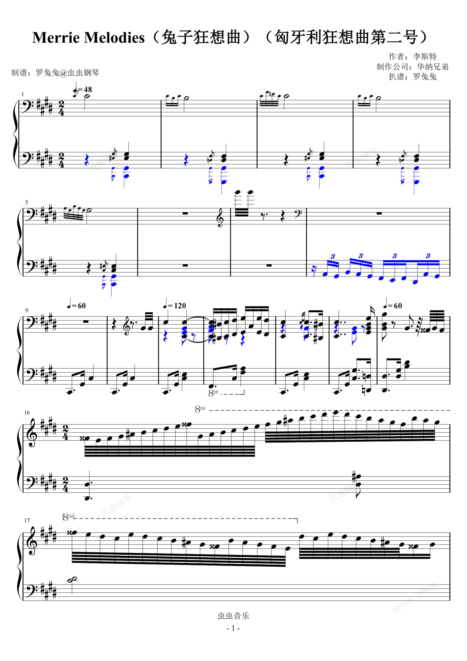 钢琴谱:Merrie Melodies(兔子狂想曲)(匈牙利狂想曲第二号)