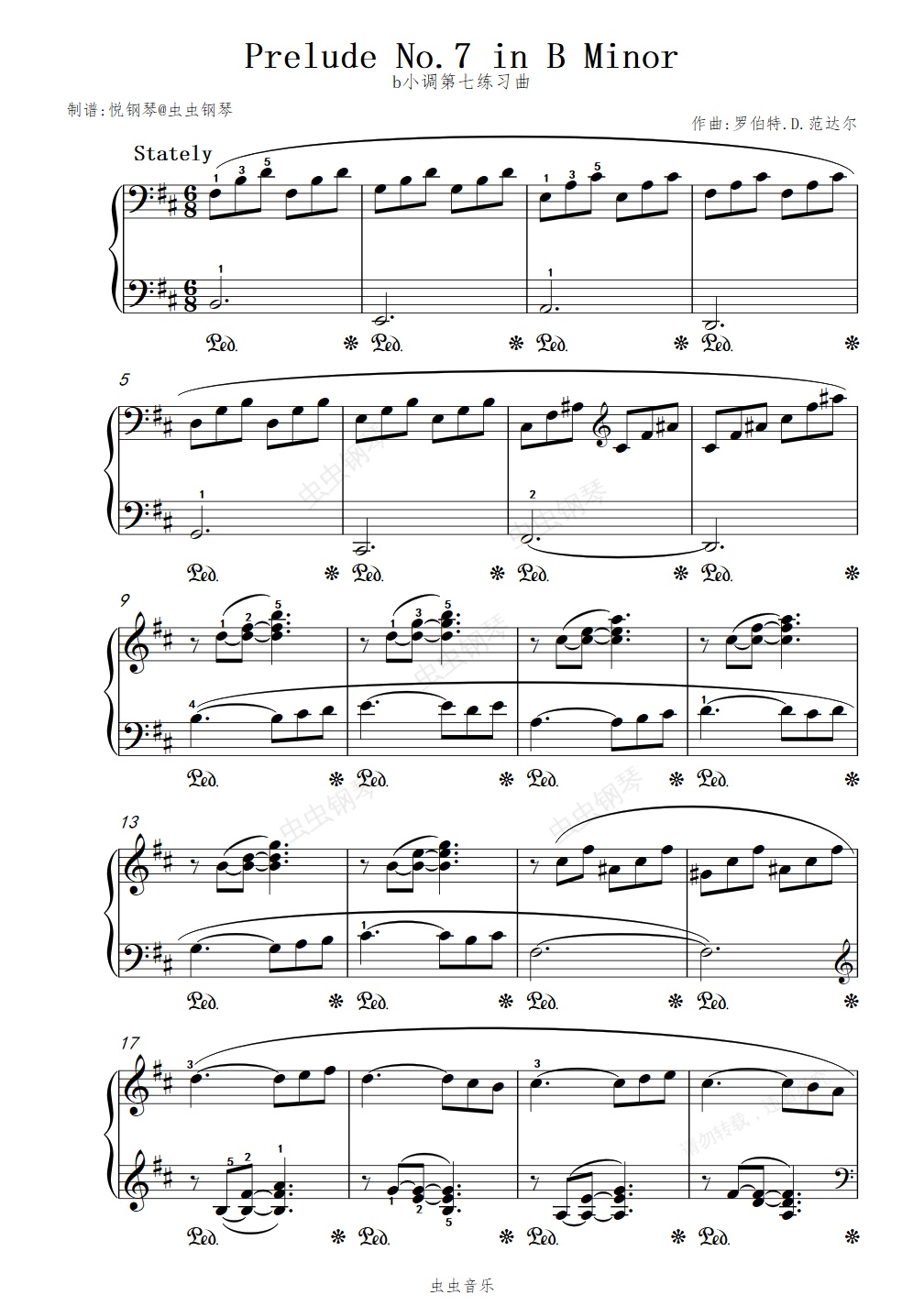 钢琴谱:1.0版月光 b小调第七练习曲//Prelude No.7 in B Minor【治愈-唯美】