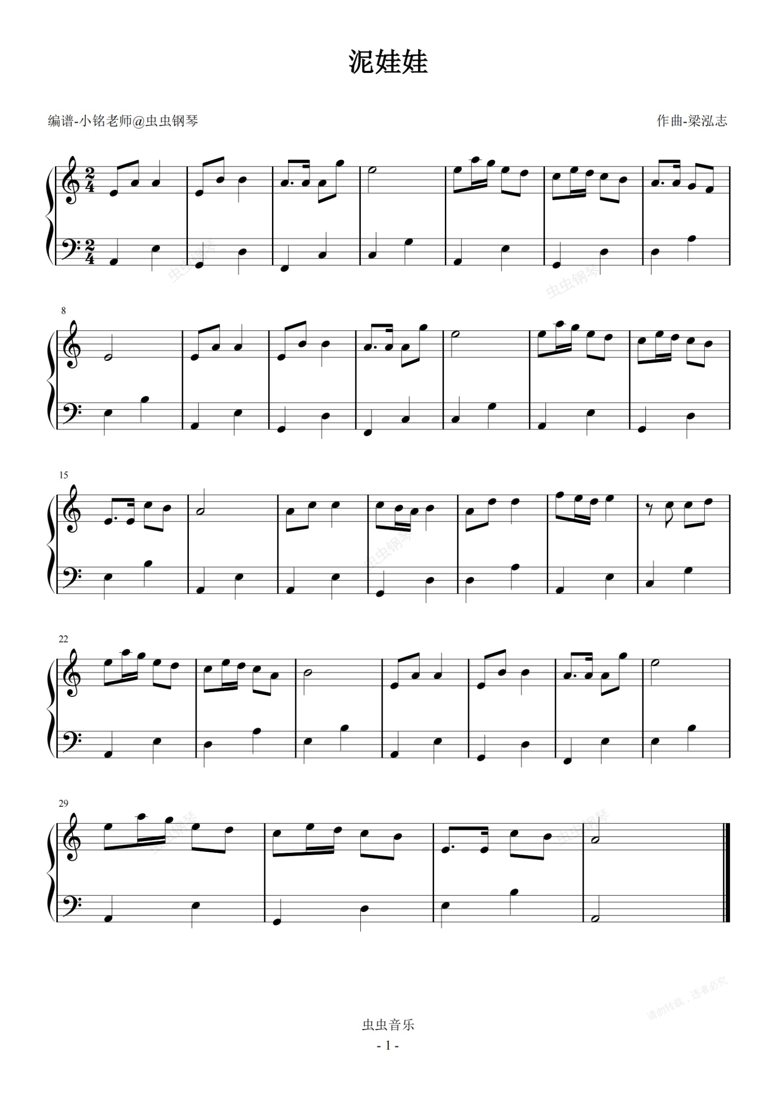 钢琴谱:泥娃娃【快乐学儿歌 小汤3】