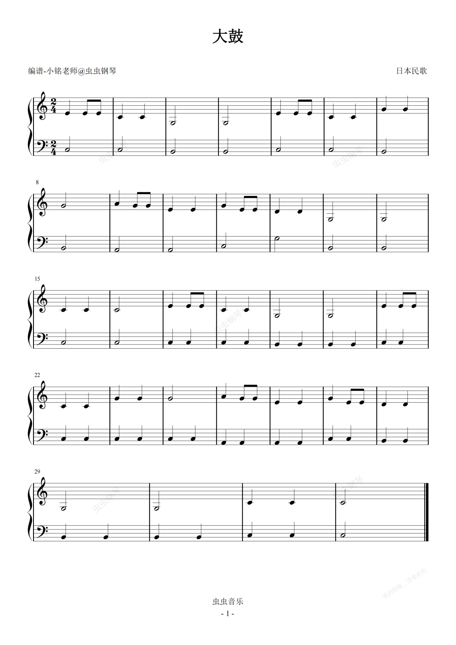 钢琴谱:大鼓【快乐学儿歌 小汤3】