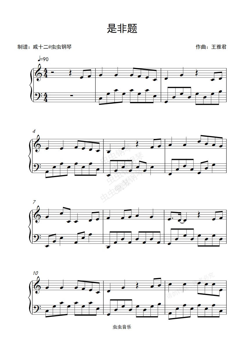 钢琴谱:是非题-C调简单版