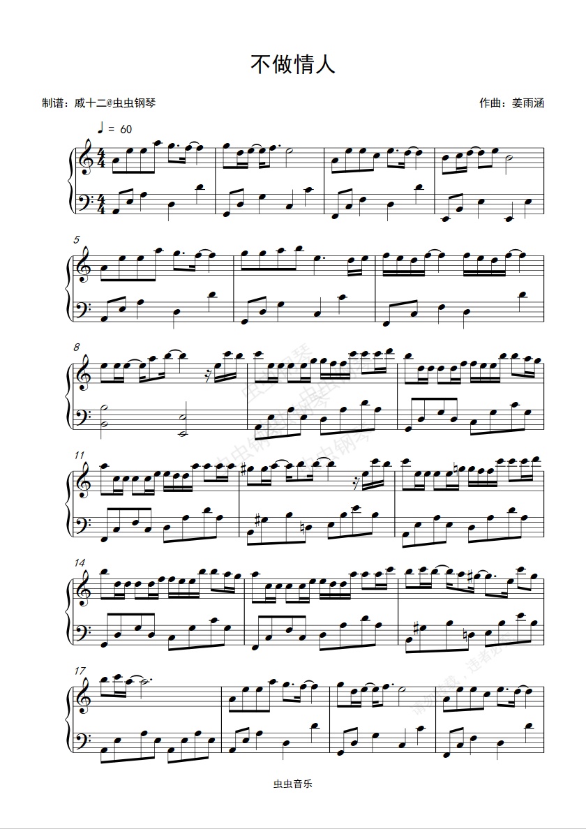 钢琴谱:不做情人-C调简单版