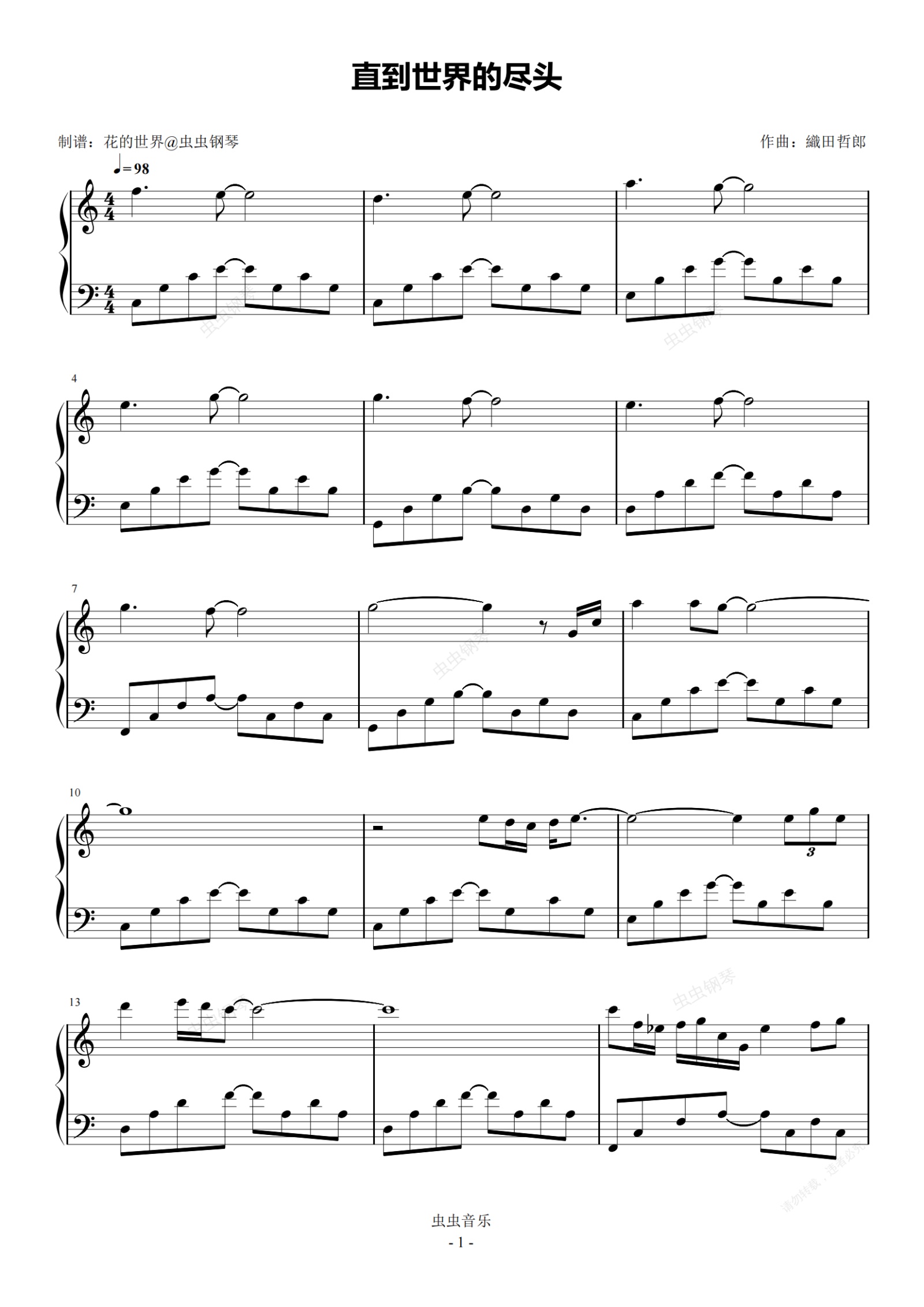 钢琴谱:直到世界的尽头 C调简易版 灌篮高手