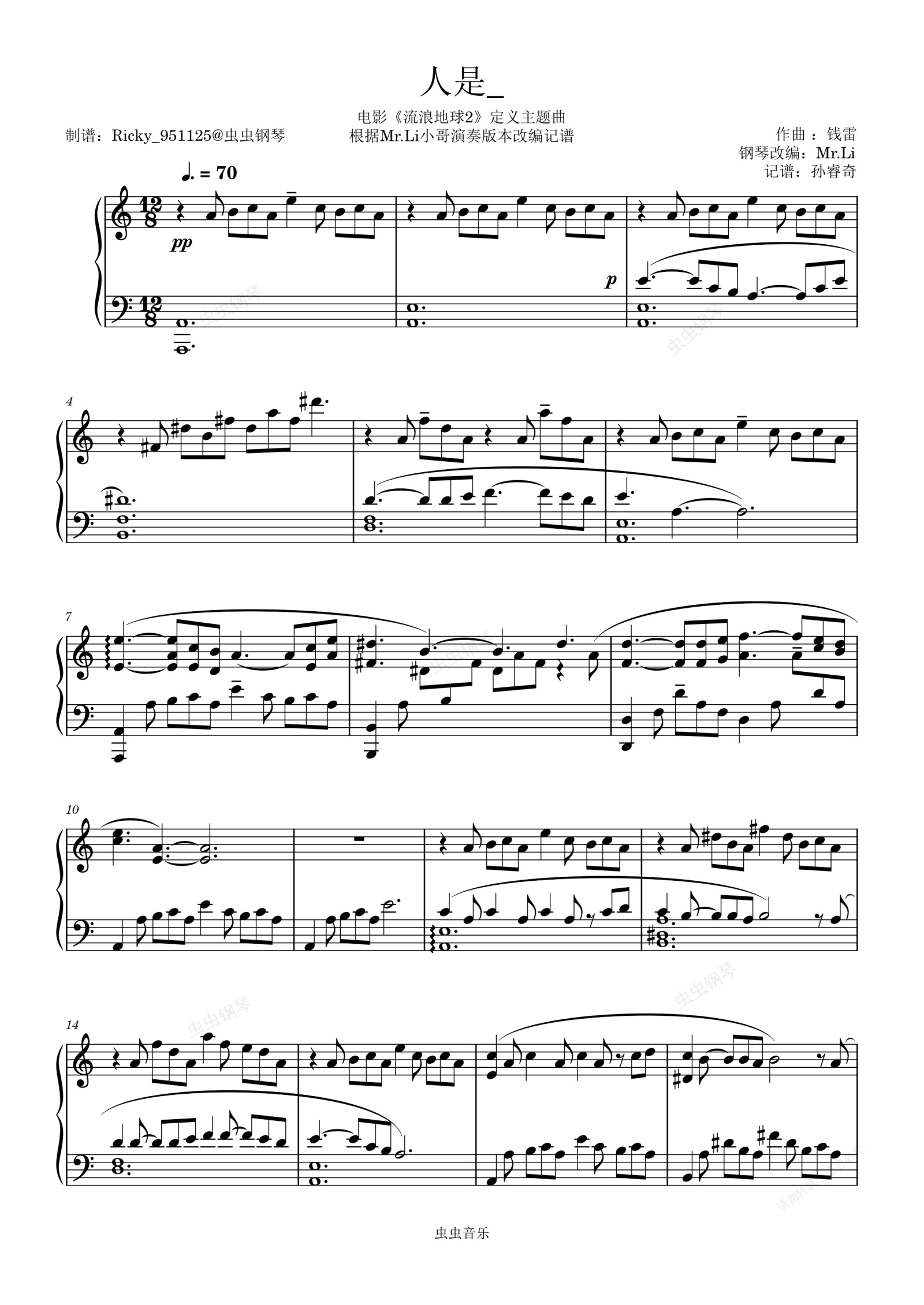 钢琴谱:【流浪地球2】人是_
