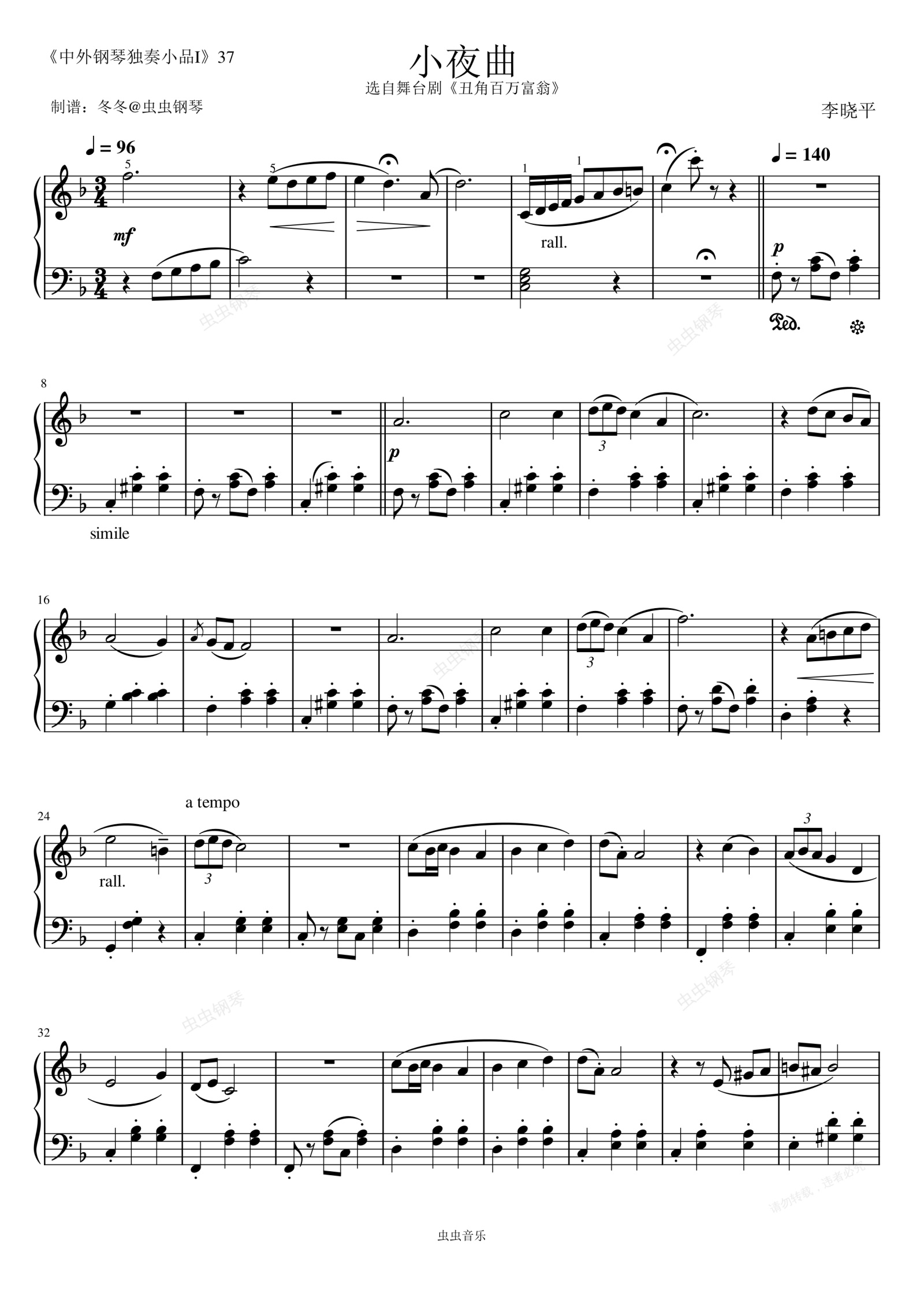 钢琴谱:小夜曲