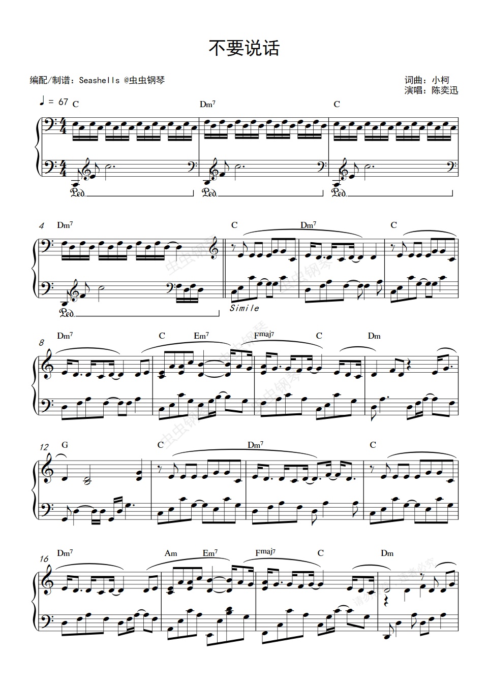 钢琴谱:陈奕迅-《不要说话》精编钢琴独奏 C大调