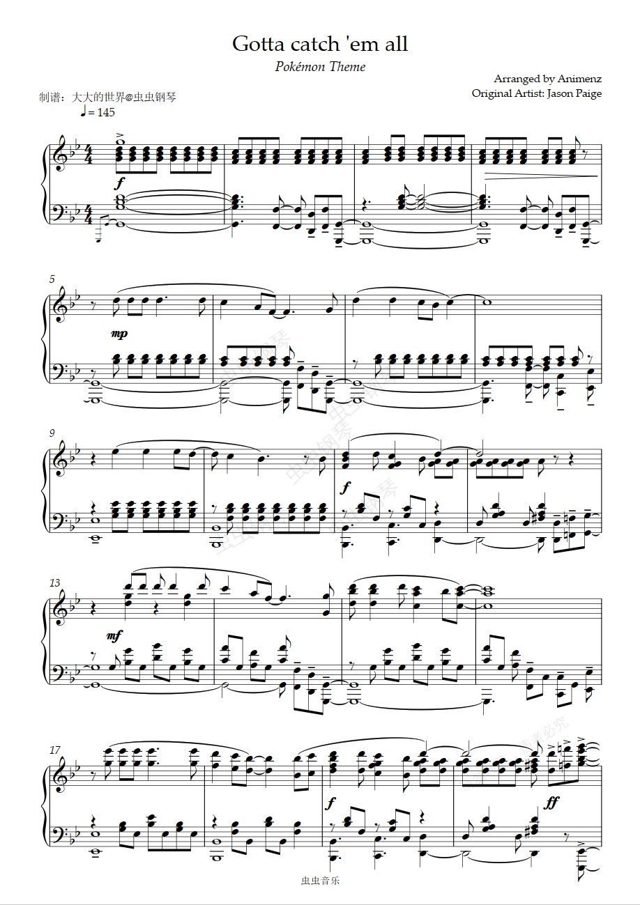 钢琴谱:Pokémon Theme - Gotta catch 'em all