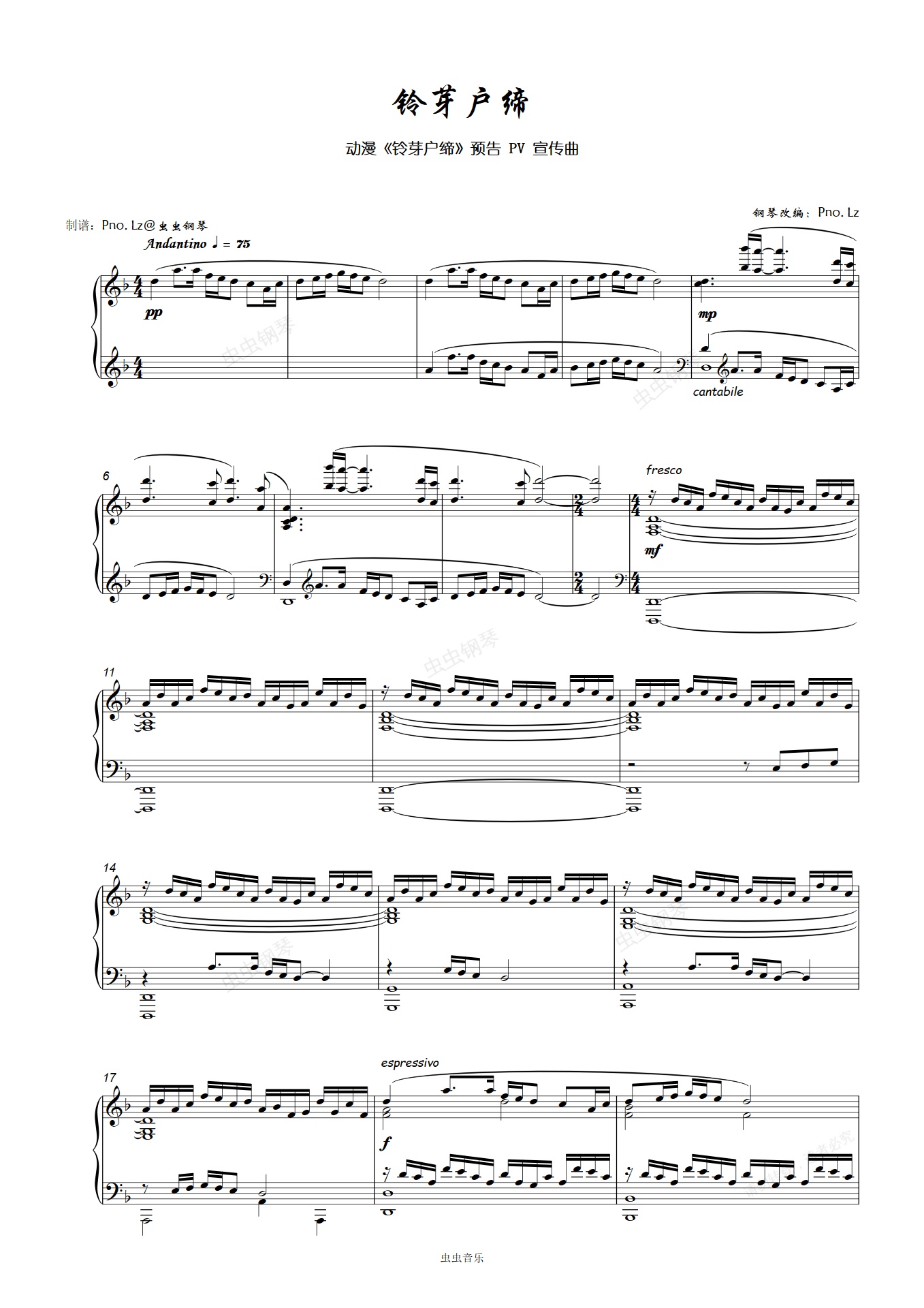 钢琴谱:【Lz Piano】铃芽户缔-动漫《铃芽户缔》预告 PV 宣传曲-重制版
