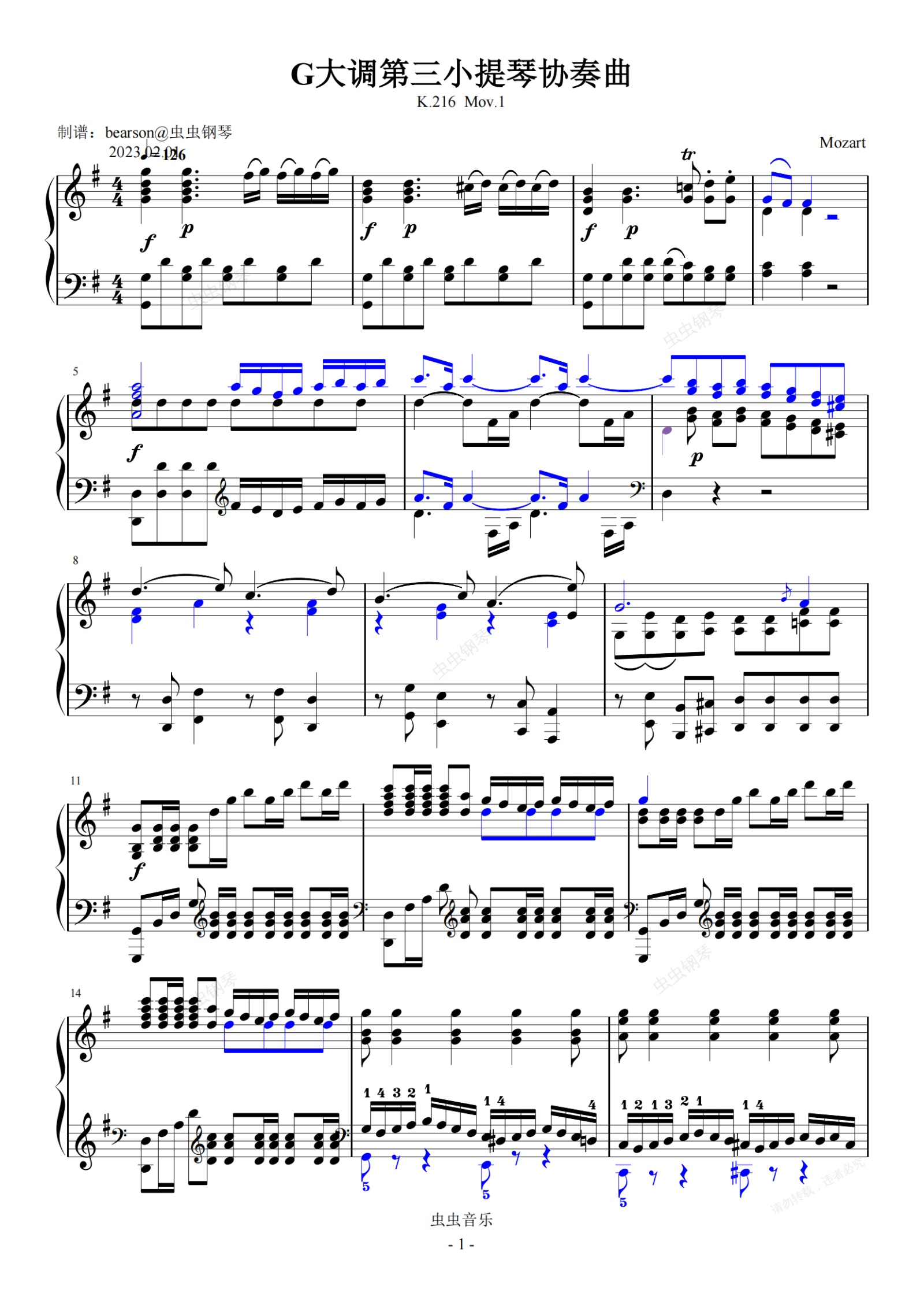 钢琴谱:莫扎特G大调第三小提琴协奏曲K.216第一乐章-钢琴独奏版