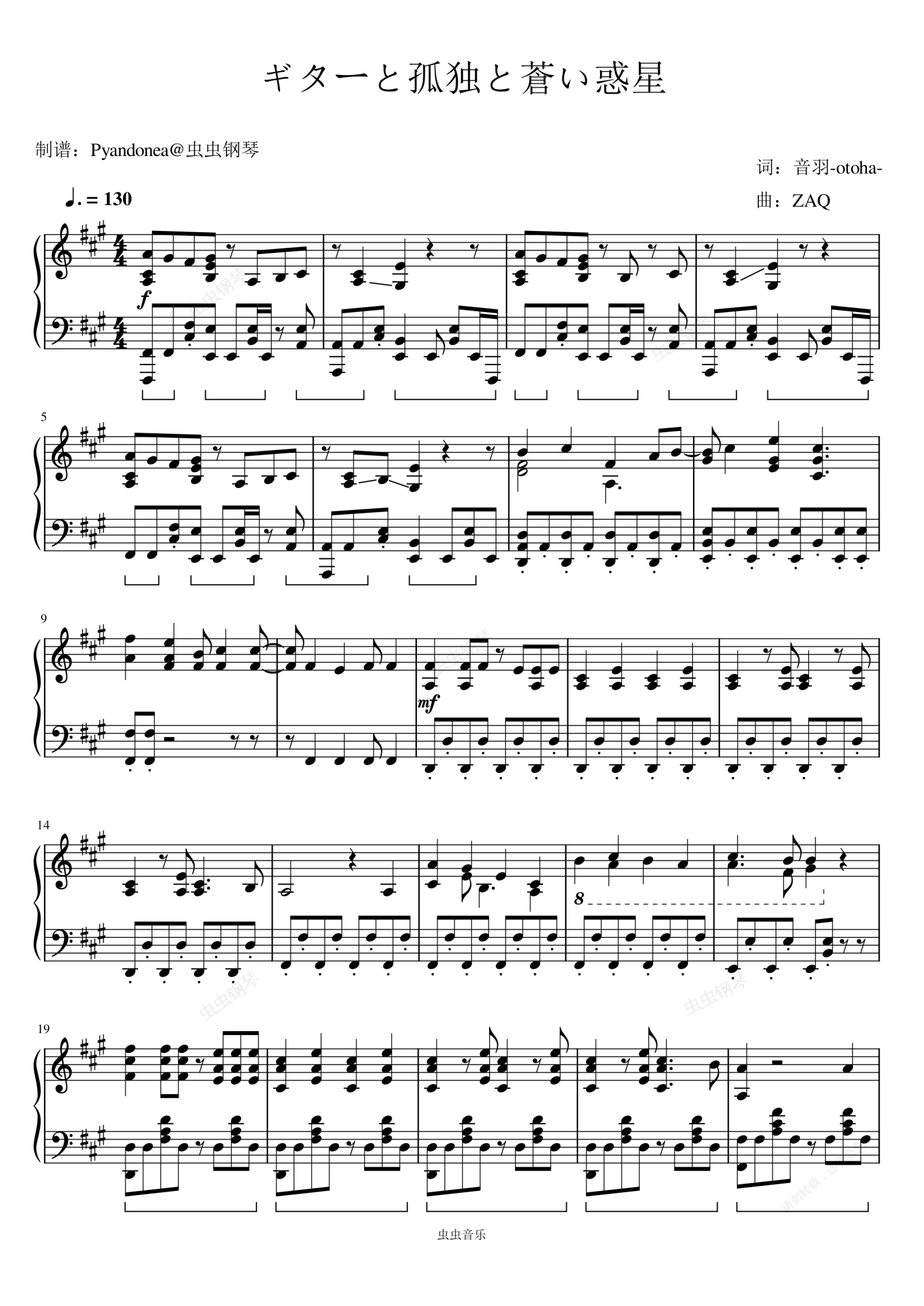 钢琴谱:ギターと孤独と蒼い惑星(吉他与孤独与蓝色星球)