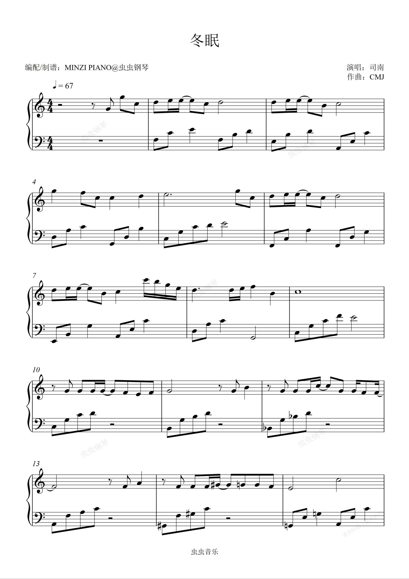 钢琴谱:冬眠-司南(好听易弹)