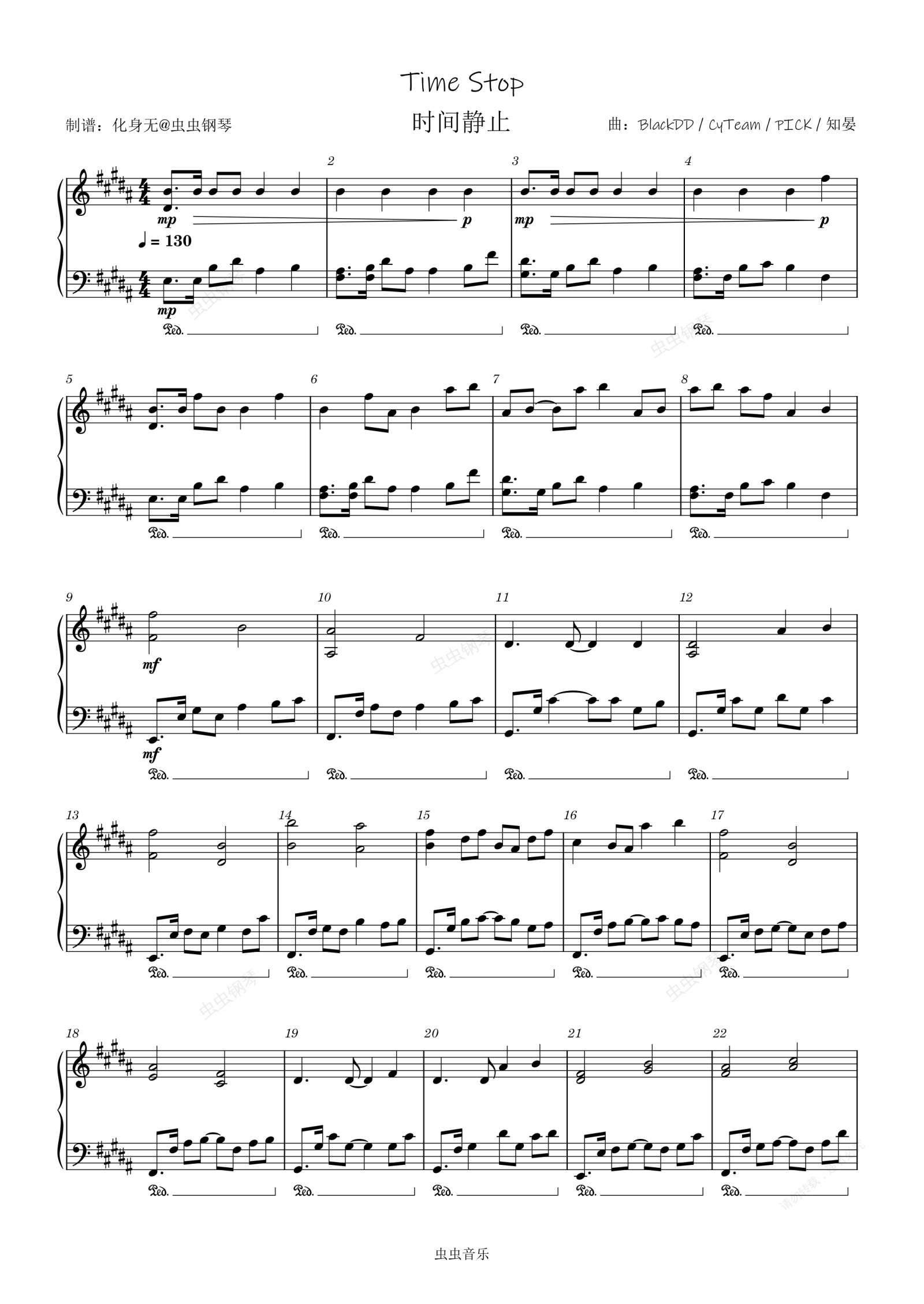 钢琴谱:Time Stop (时间静止)