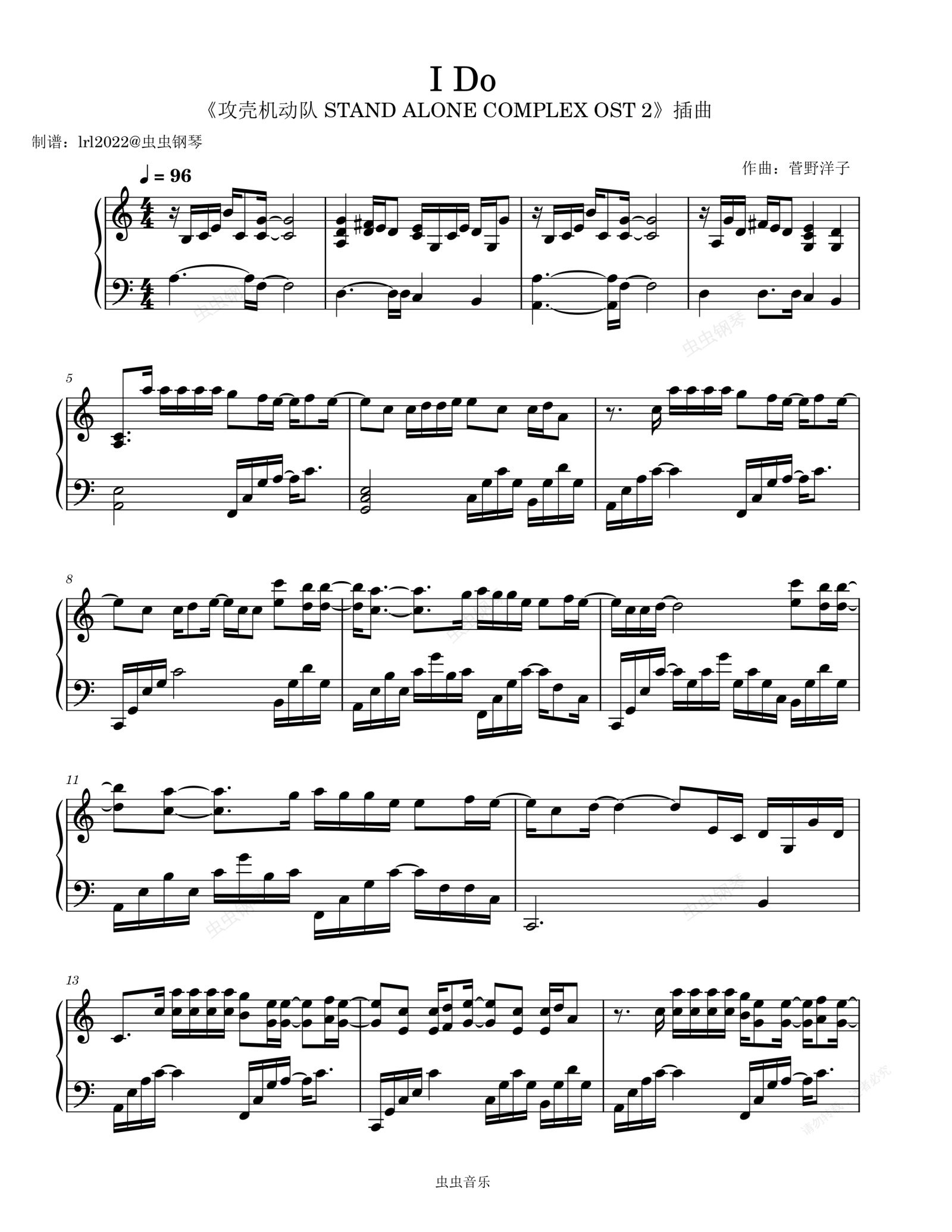 钢琴谱:I Do-《攻壳机动队 STAND ALONE COMPLEX OST 2》插曲