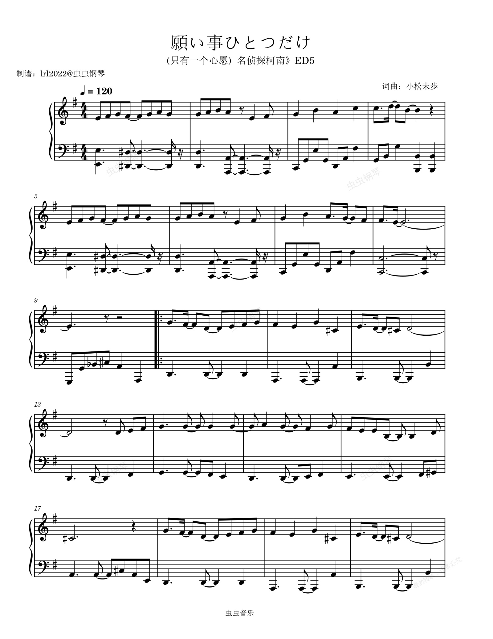 钢琴谱:願い事ひとつだけ (只有一个心愿) 《名侦探柯南》ED5-Negaigoto Hitotsu Dake