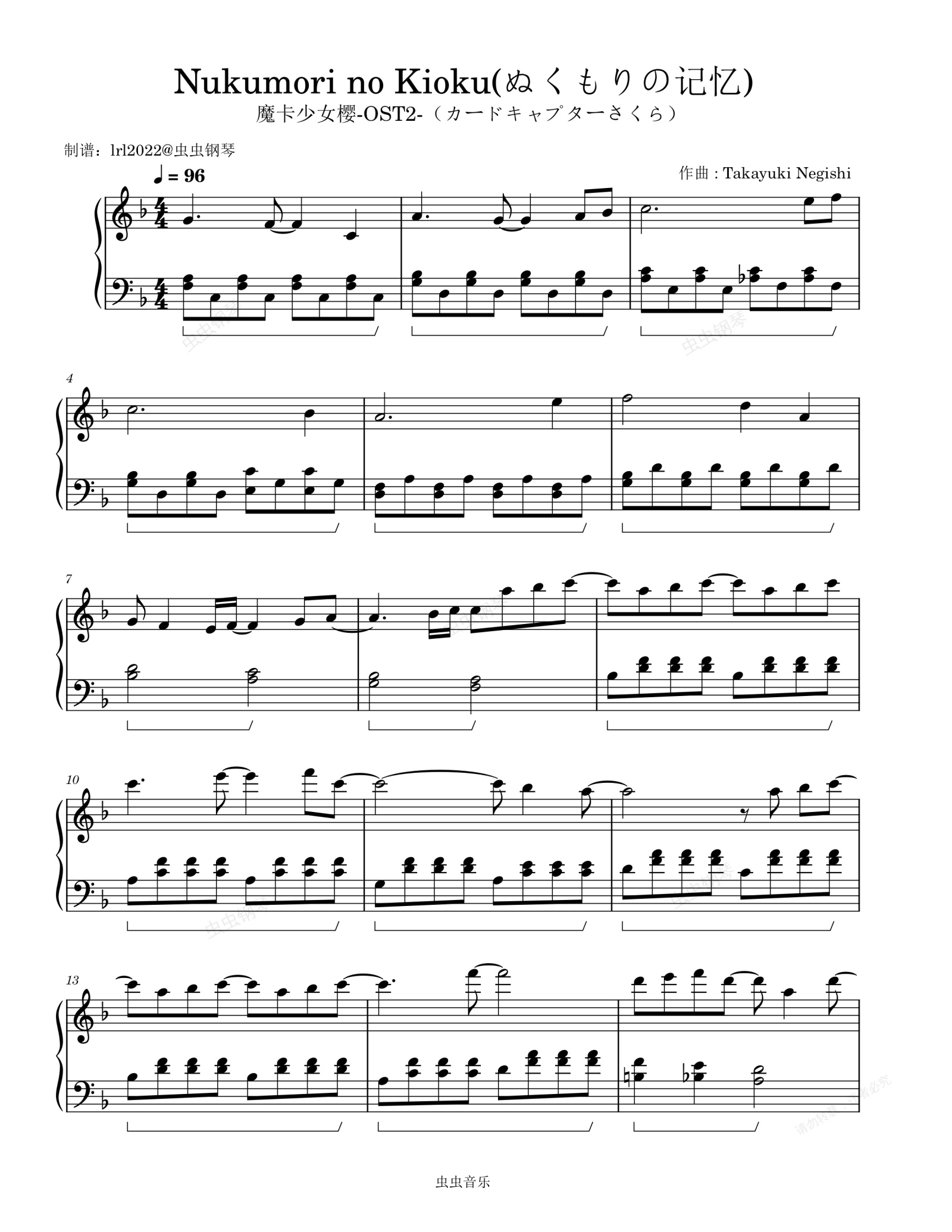 钢琴谱:Nukumori no Kioku-《魔卡少女樱》OST2