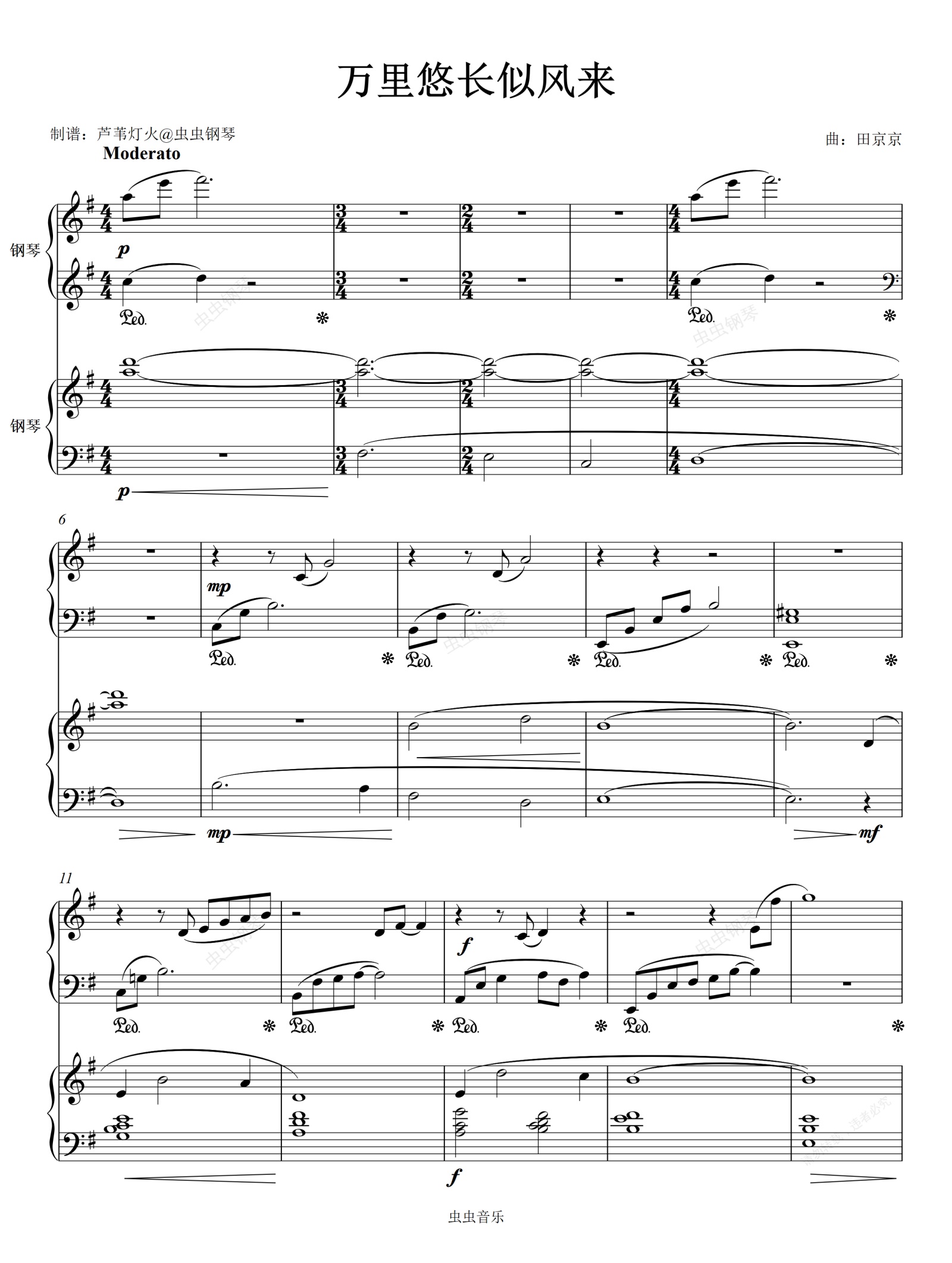 钢琴谱:万里悠长似风来 《星汉灿烂》插曲