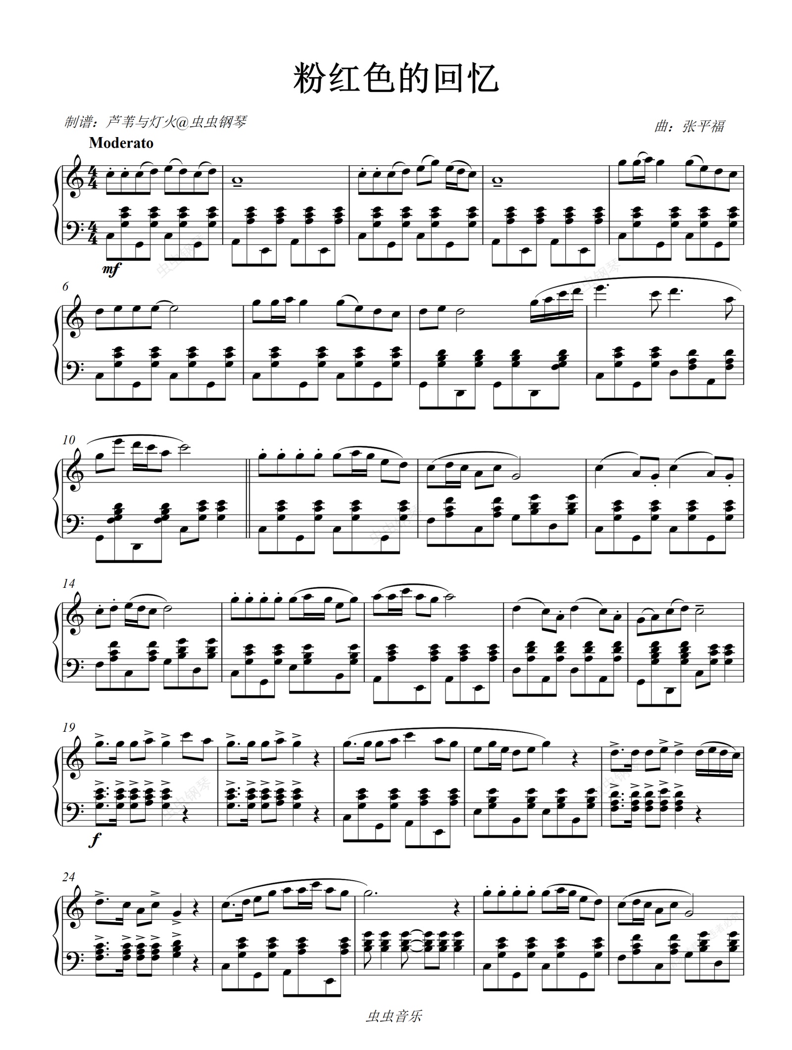 钢琴谱:粉红色的回忆-韩宝仪