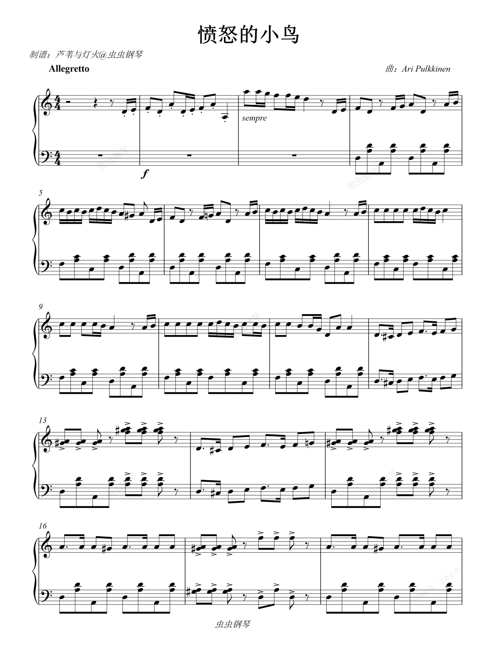 钢琴谱:愤怒的小鸟