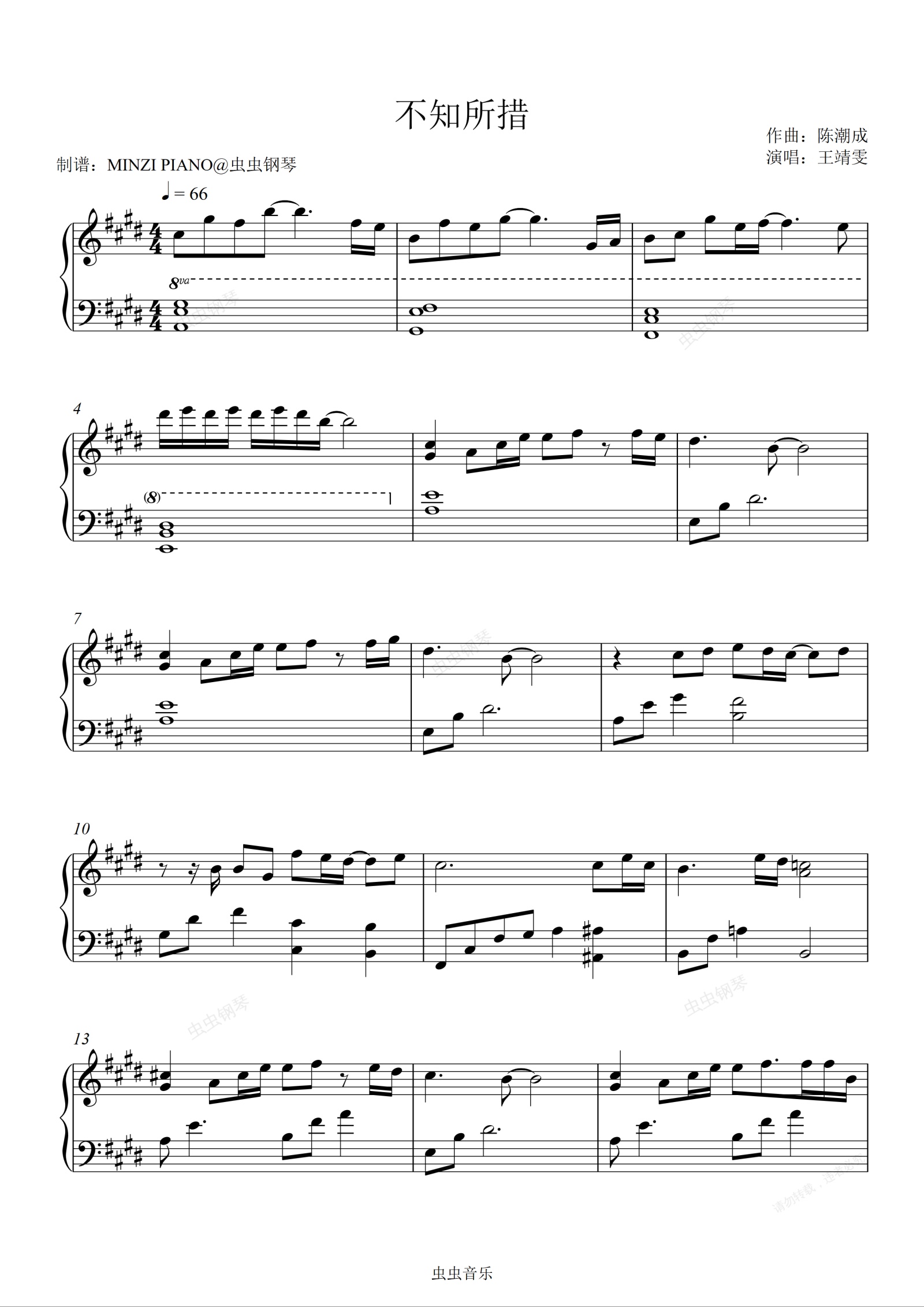 钢琴谱:不知所措-王靖雯不胖