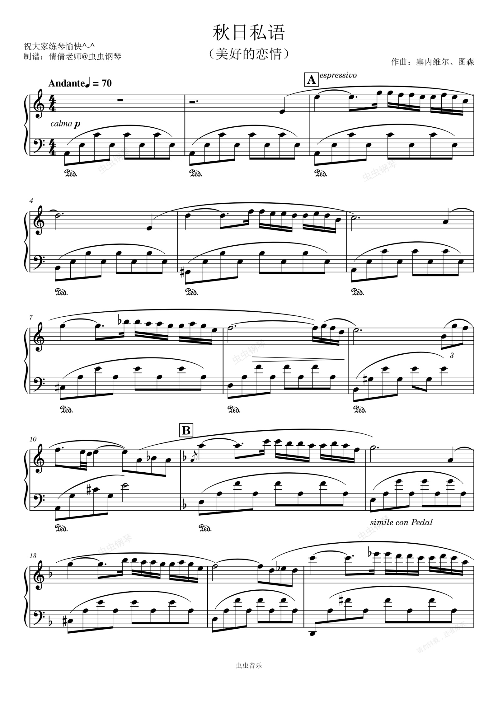 钢琴谱:秋日私语-适当简易版-理查德克莱德曼
