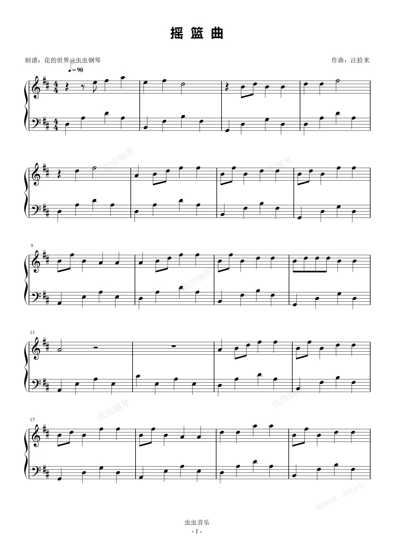 钢琴谱:摇篮谣 原调简易版 斯斯与帆 去有风的地方