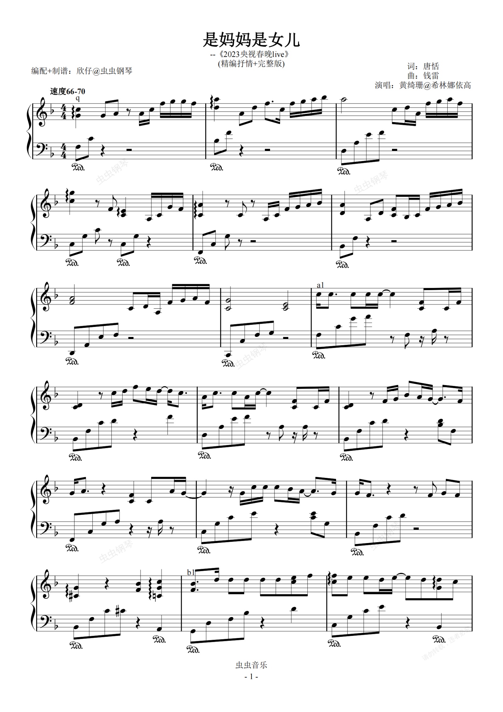 钢琴谱:F《是妈妈是女儿》(黄绮珊@希林娜依高、精编抒情+完整版)