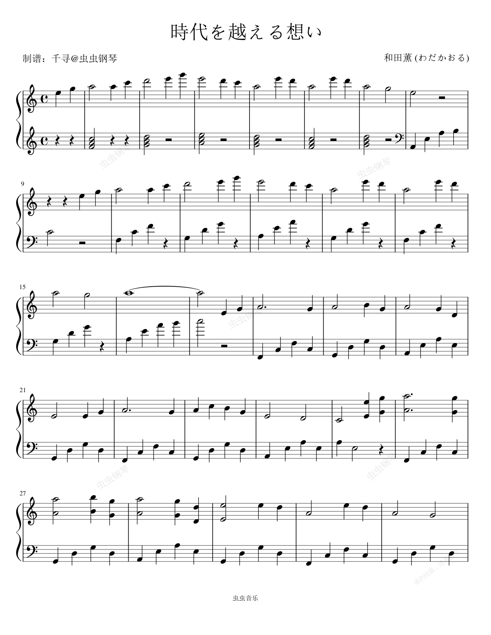 钢琴谱:穿越时空的思念 初学简易C调版《犬夜叉 超越时代的思念》