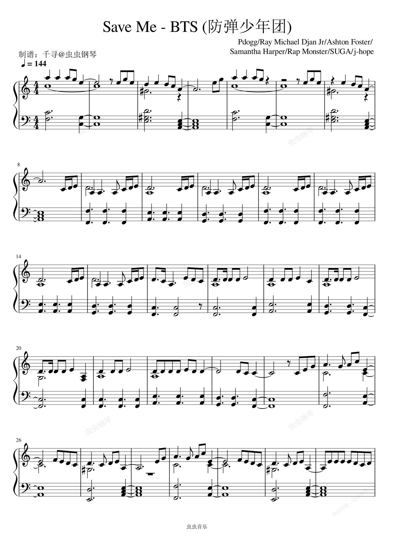 钢琴谱:Save Me - BTS (防弹少年团)
