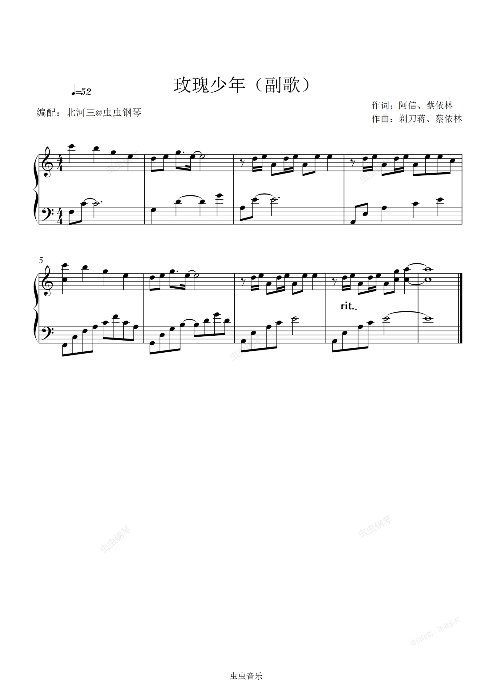 钢琴谱:玫瑰少年(副歌) 超容易上手版