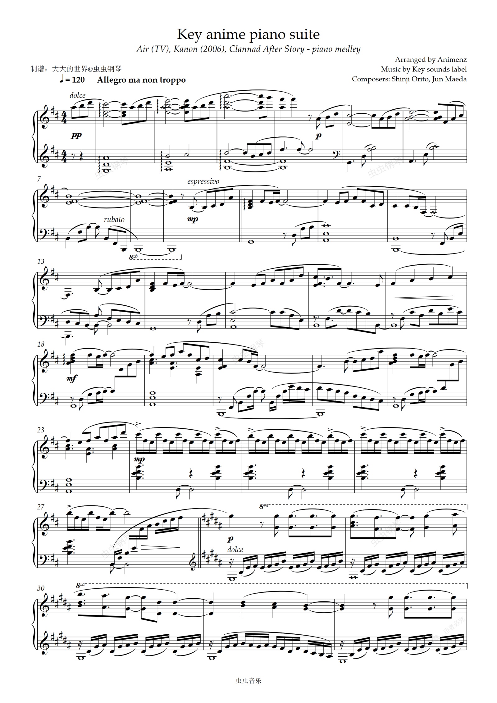 钢琴谱:【Animenz】鸟之诗-时间铭刻之歌 Key Anime Piano Suite