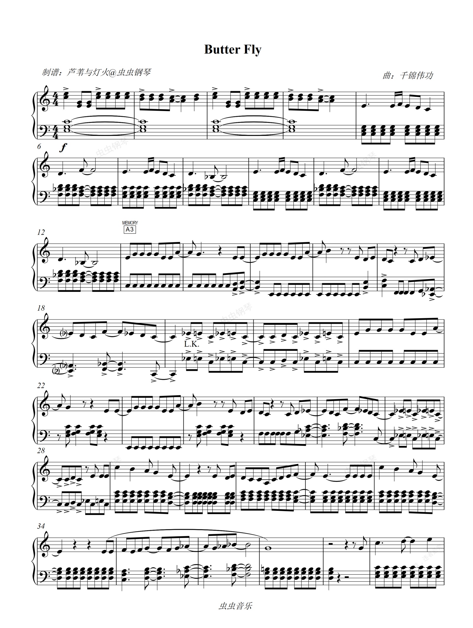 钢琴谱:数码宝贝主题曲-Butter Fly