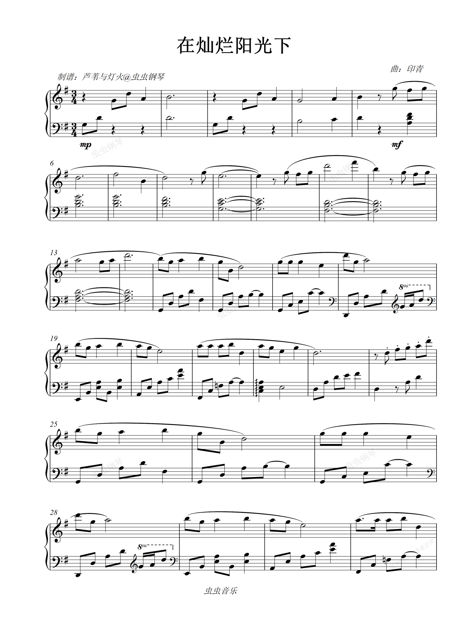 钢琴谱:在灿烂的阳光下(从小爷爷对我说,吃水不忘挖井人)