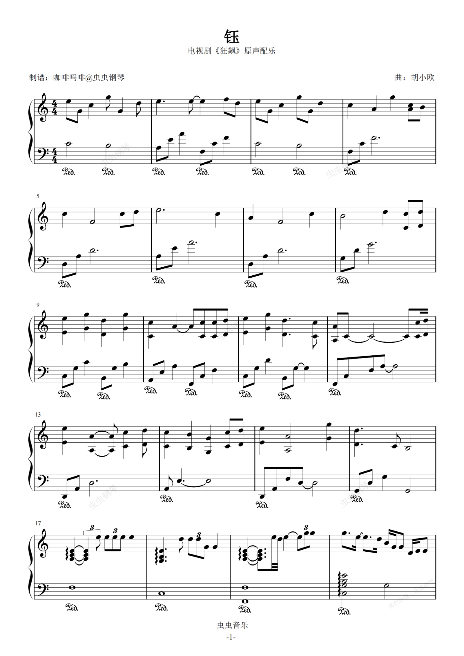 钢琴谱:钰-《狂飙》电视剧配乐 C调钢琴谱