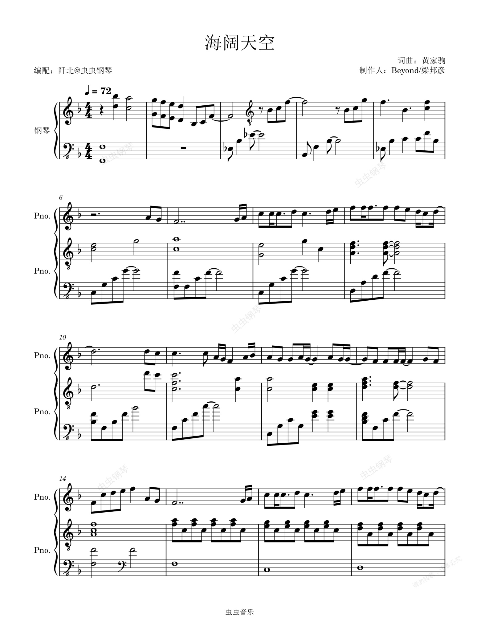 钢琴谱:海阔天空(旋律+双手伴奏)
