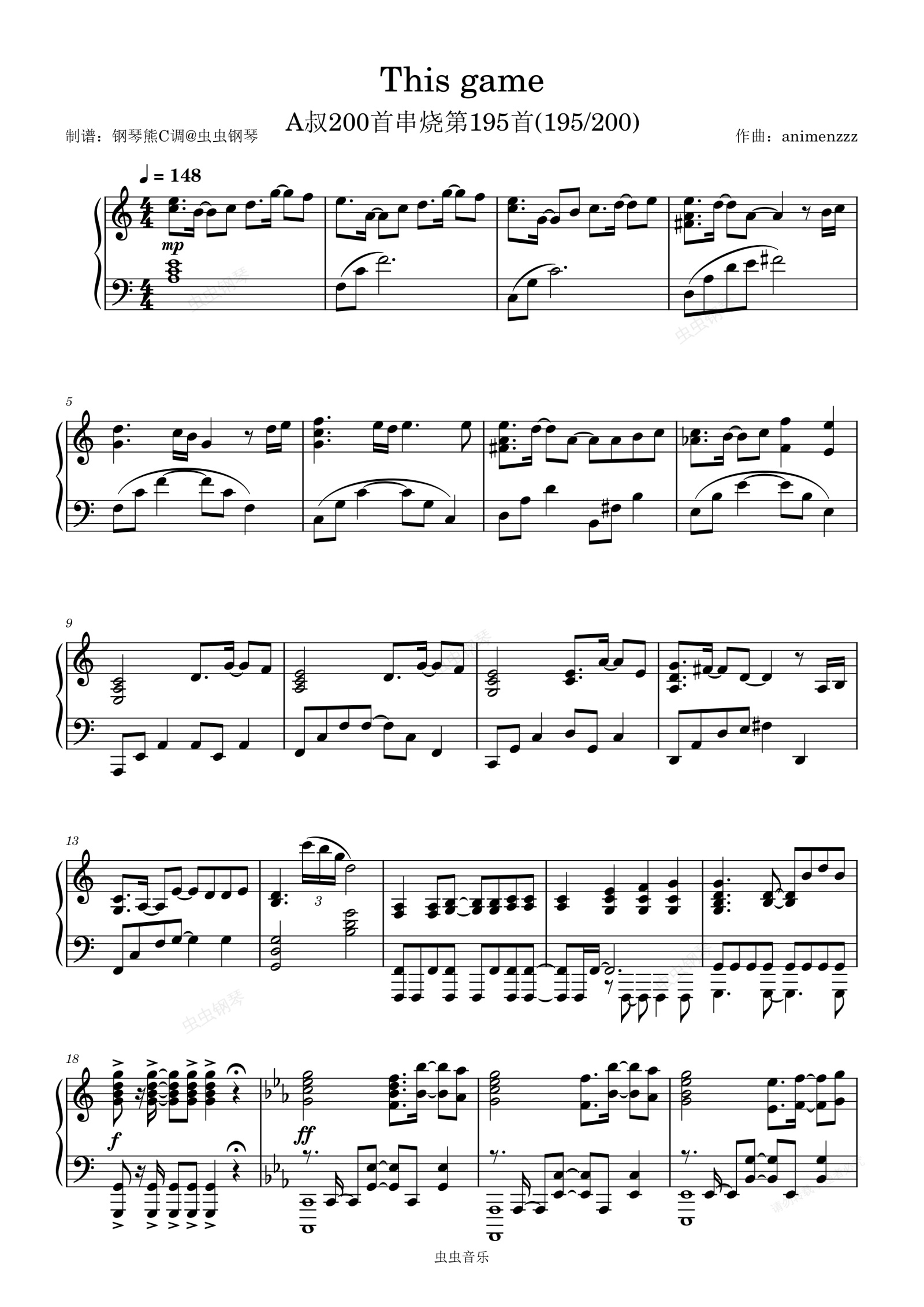 钢琴谱:C大调 游戏人生《This Game》A叔200首串烧第195首 (195/200)A叔200首将会继续更~喜欢的兄弟记得点♥♥♥👇👇👇