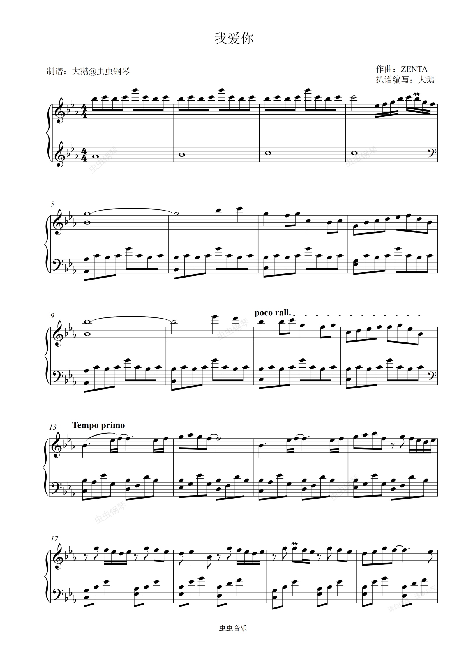 钢琴谱:绚莎Ayasa《我爱你》(原调柔美完整版)
