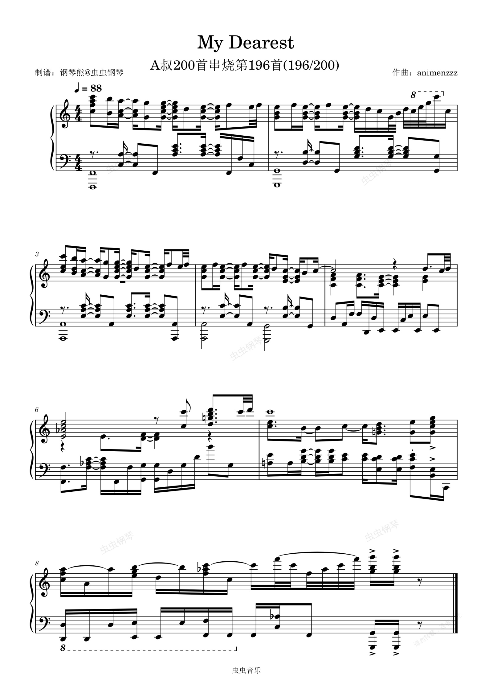 钢琴谱:罪恶王冠《My Dearest》叔200首串烧第196首 (196/200)A叔200首将会继续更~喜欢的兄弟记得点♥♥♥👇👇👇