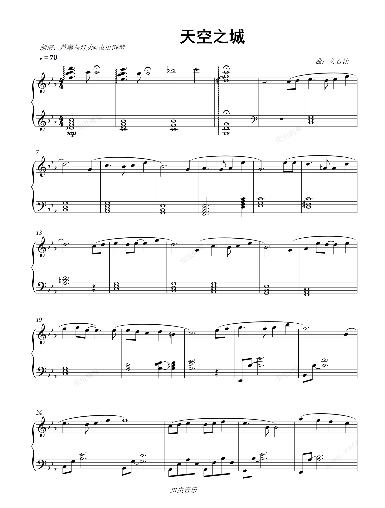 钢琴谱:天空之城 原调 久石让 宫崎骏
