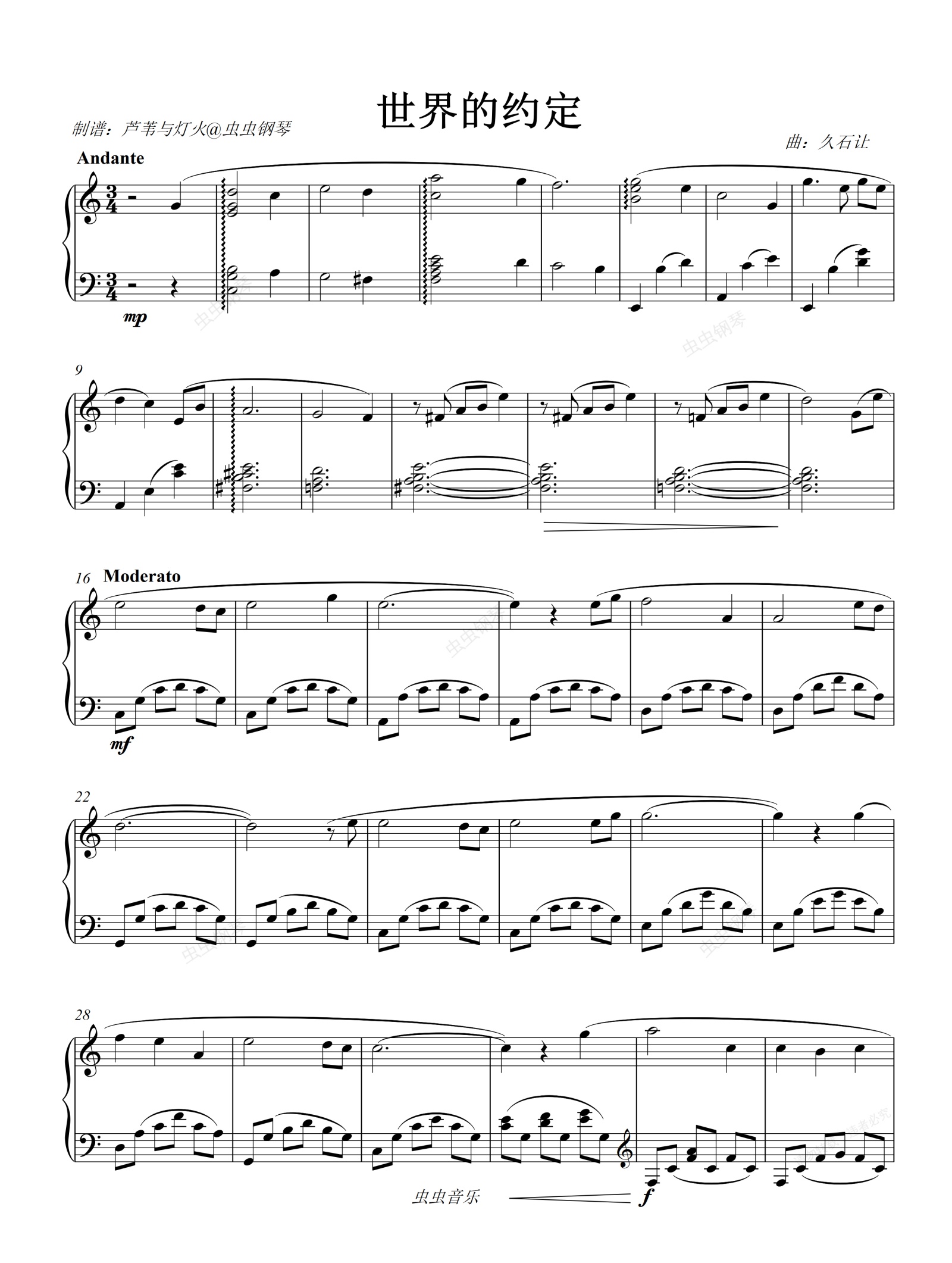 钢琴谱:世界的约定 哈尔的移动城堡