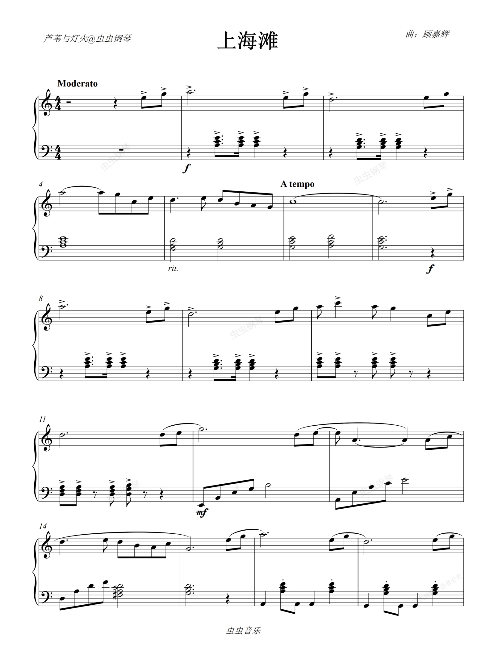 钢琴谱:上海滩 怀旧经典 经典老歌