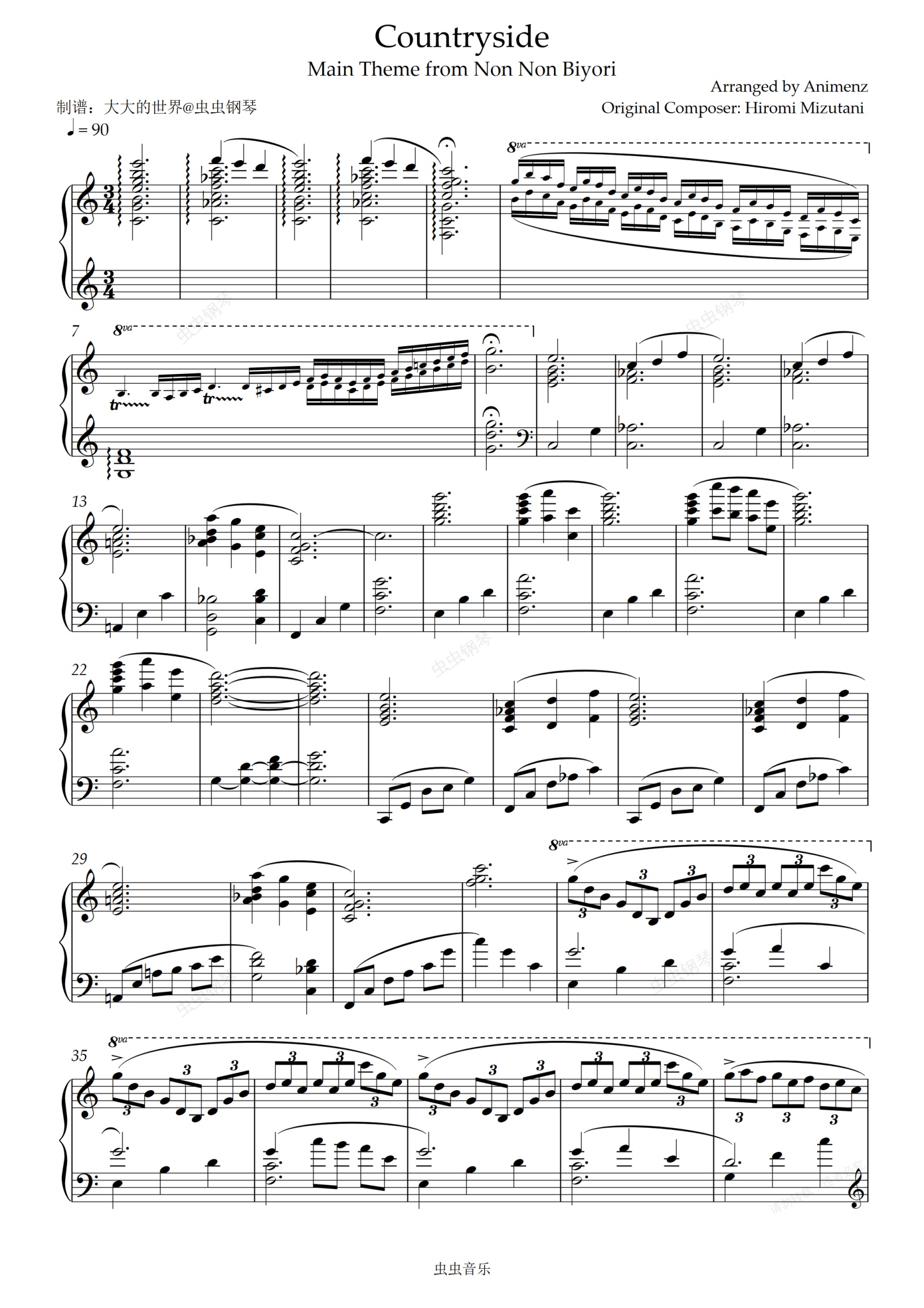 钢琴谱:【Animenz】Countryside - Main Theme from Non Non Biyori