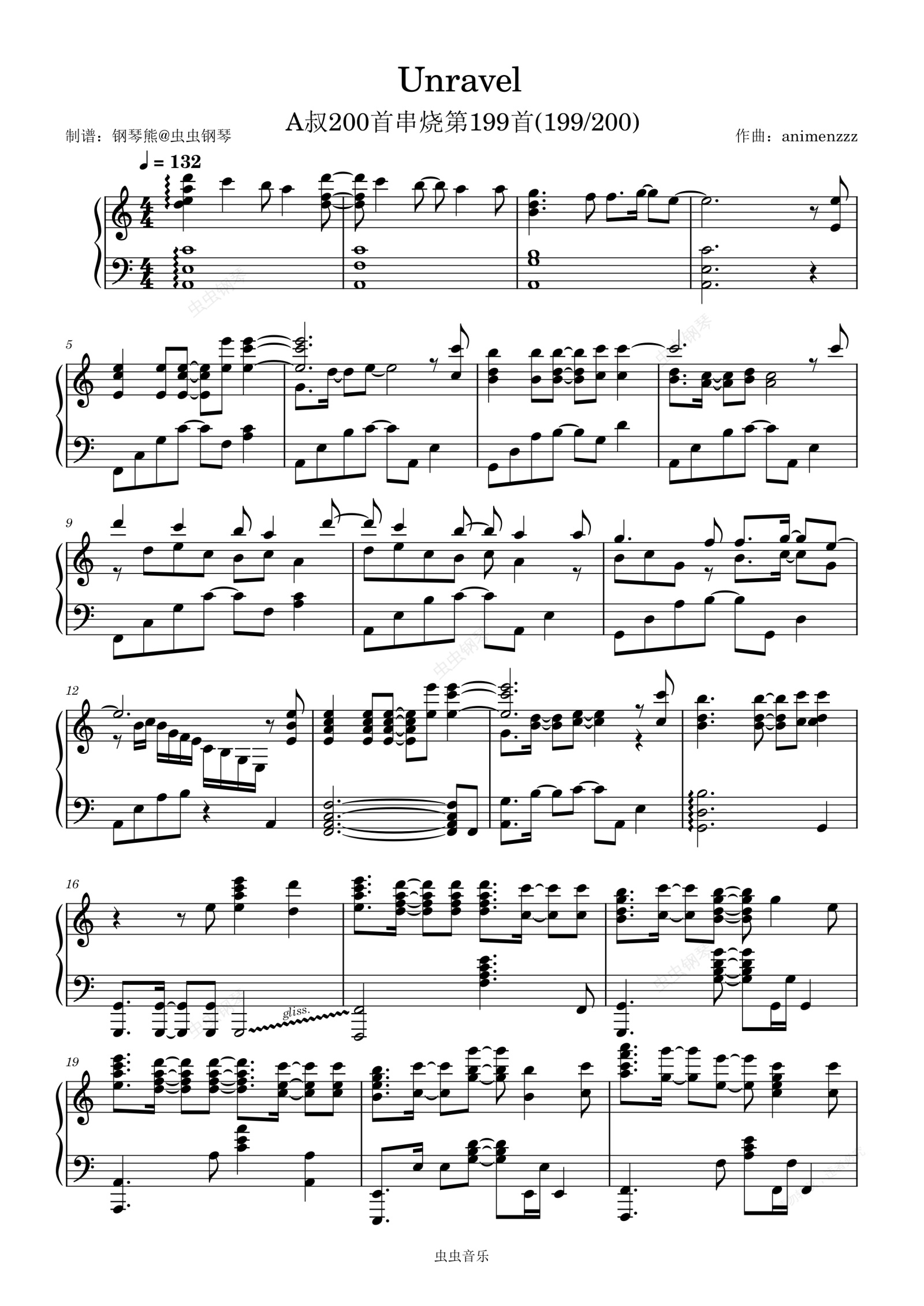 钢琴谱:C大调 东京食尸鬼《Unravel》A叔200首串烧第199首 (199/200)A叔200首将会继续更~喜欢的兄弟记得点♥♥♥👇👇👇